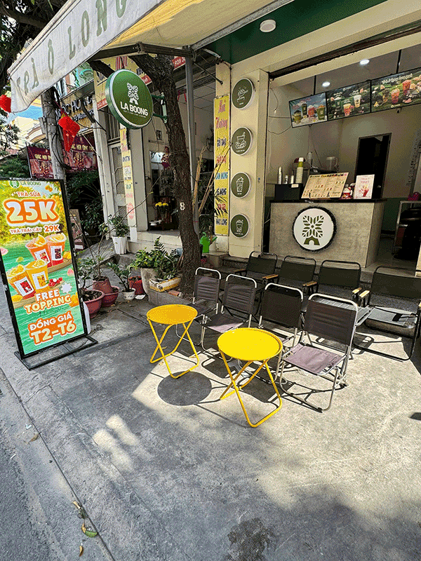 - Nội thất: Toàn bộ hệ thống bán hàng, nội thất, máy pod, bộ thiết bị pha chế, bộ nồi nấu trà sữa, có nhà vệ sinh phía sau